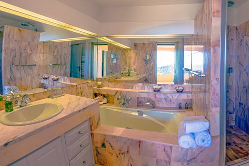 Discover this stunning, luxurious, south- and west-facing suite of 39 m² on the first floor of a villa with a beautifully appointed loggia of 9 m² with panoramic views of the sea and the surrounding hills.