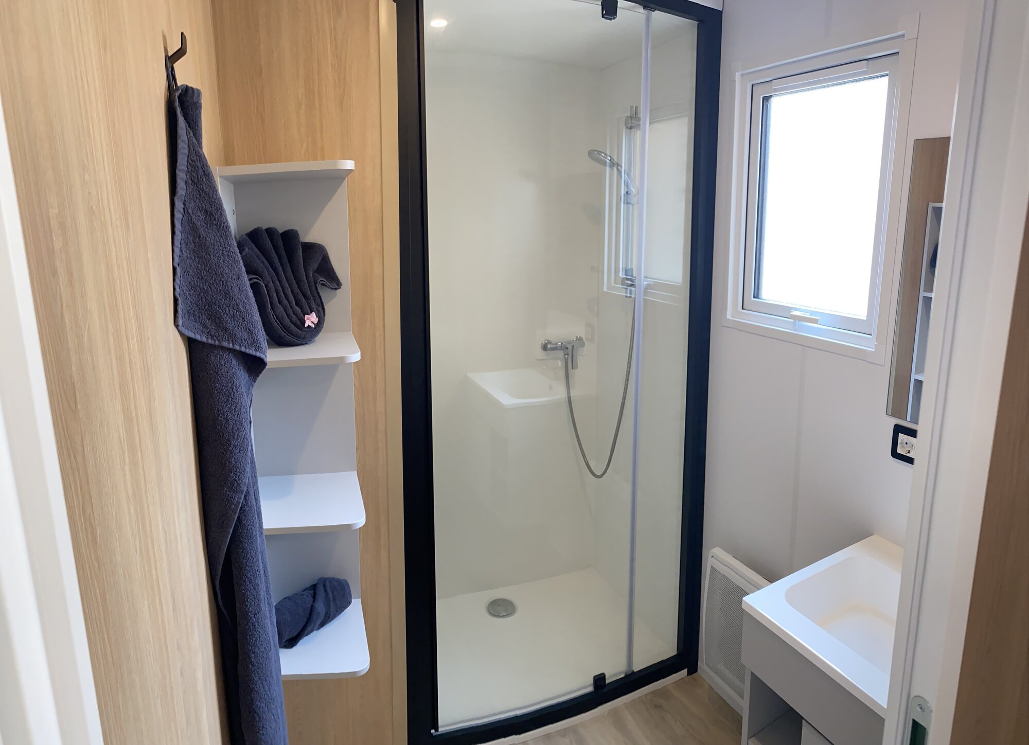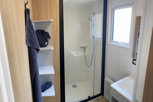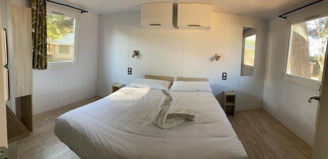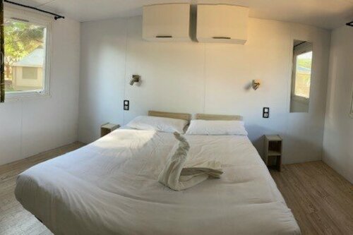 The premium 1-bedroom mobile home, 26m², also benefits from a dishwasher, kettle, toaster and Senseo coffee maker, as well as a large master bedroom with a 160x200 bed prepared before your arrival and towels provided.