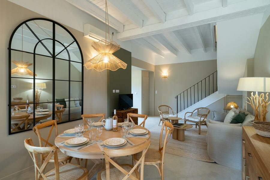 This cosy 3* duplex has a modern and warm living room, opening onto the south facing terrace and having direct access to the shared heated swimming pool.