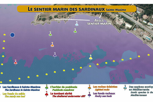 - Environmental education: seven buoys line the course, equipped with underwater panels presenting the diversity of Mediterranean flora and fauna. An underwater orientation table allows you to fully appreciate the coastal landscape.