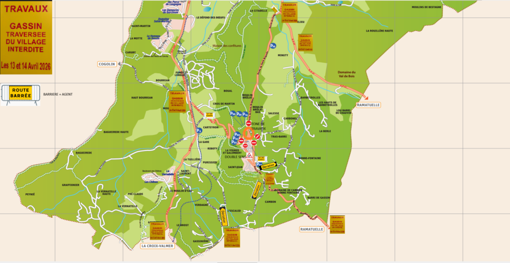 During these two days, access to the village via the northern entrance (RD 89 and Route de Coste Brigade) will be completely closed.