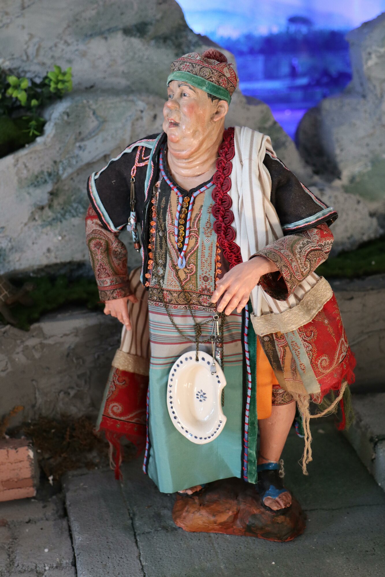 Les santons apparaissent dans un décor en profondeur par l’habile organisation de la perspective et du clair-obscur. Les figures typiques émergent : la beauté Procidienne, le noble, les bergers, le goitreux évoluent dans les scènes de la vie quotidienne de cette époque…