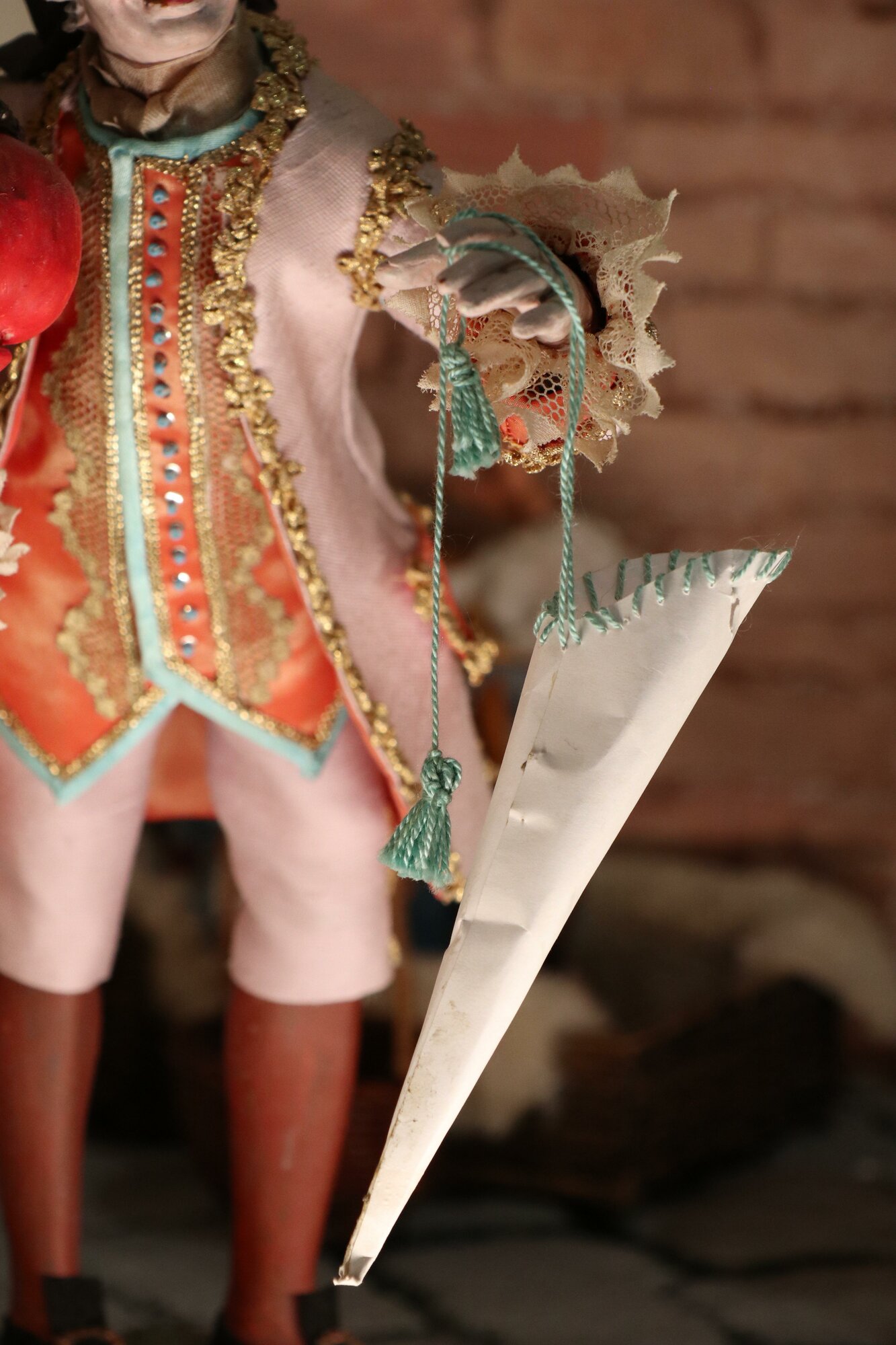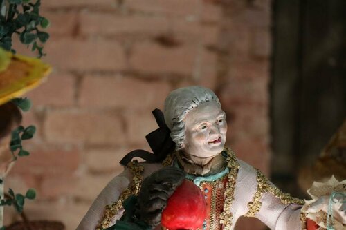 La crèche napolitaine s’épanouit dans ses excès baroques avec des personnages magnifiquement sculptés et parés d’habits luxueux et éclatants. L’exubérance des crèches napolitaines dépasse déjà les frontières.