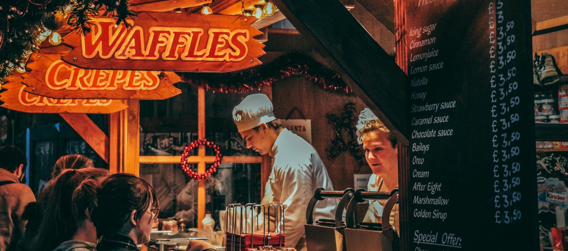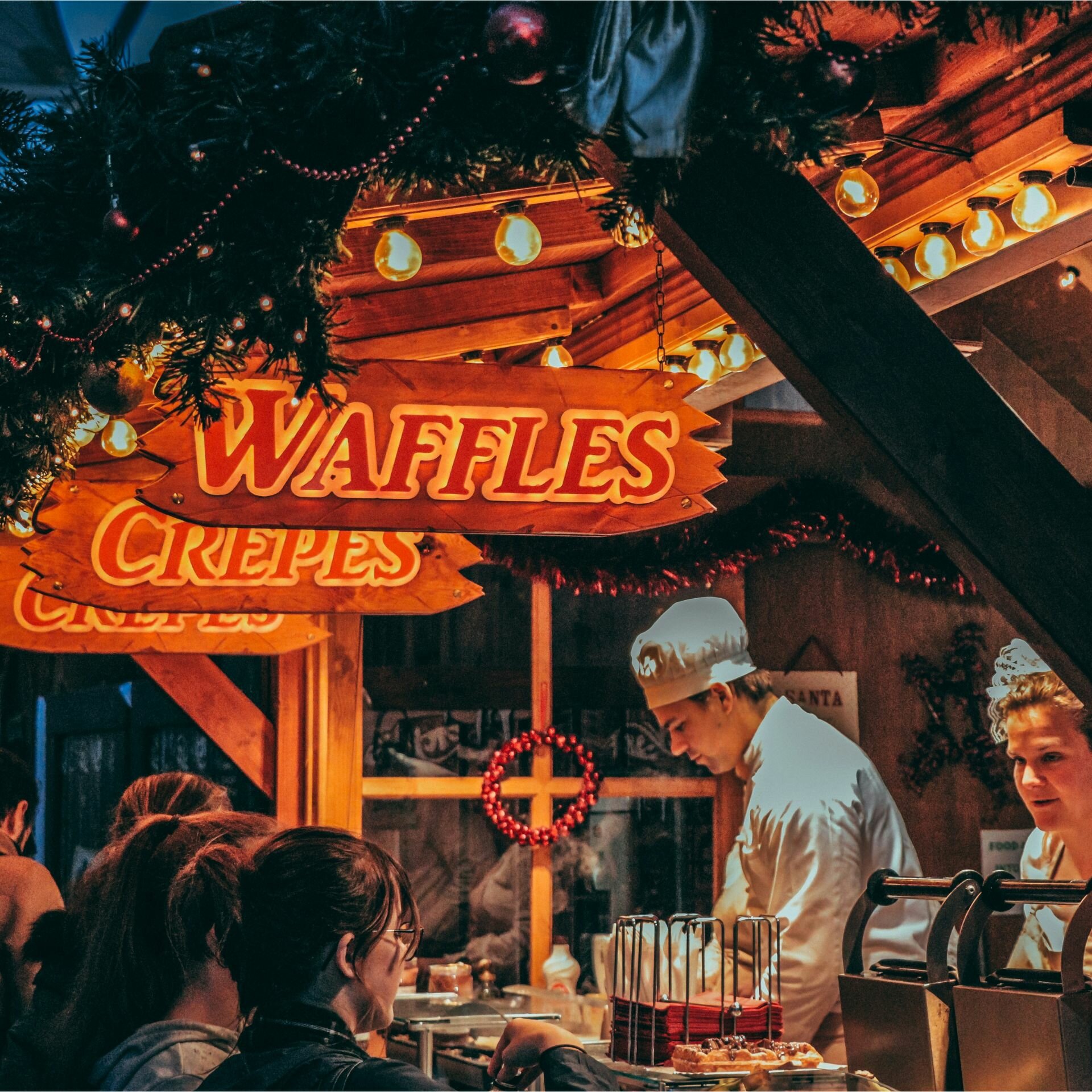 Fromages fondus, gaufres liégeoises … chaque bouchée réchauffe le cœur dans un décor digne d’un conte de Noël.