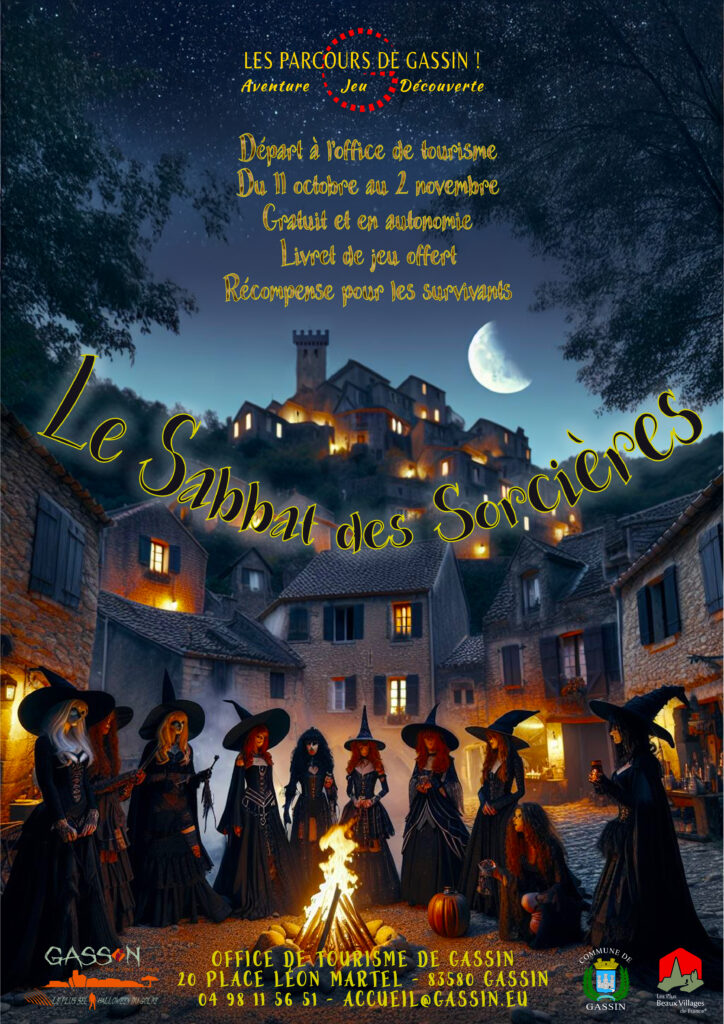 Gassin se transforme en village maudit à l’occasion d’Halloween ! Du 11 octobre au 2 novembre, laissez-vous emporter par le Sabbat des Sorcières, un parcours mystérieux et terrifiant au cœur des ruelles médiévales. Entre énigmes effrayantes et monstres tapis dans l’ombre, les frissons sont garantis !