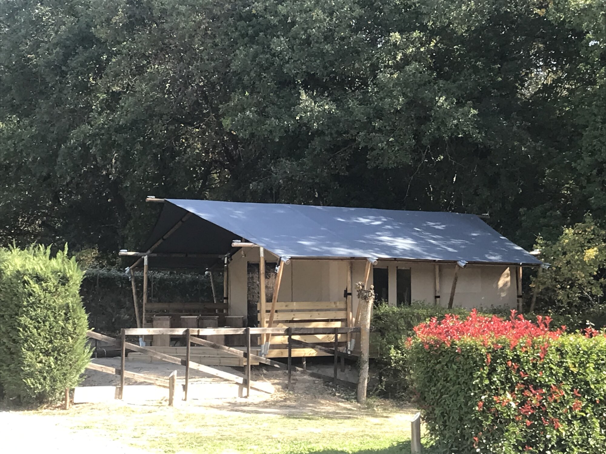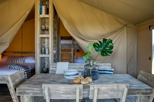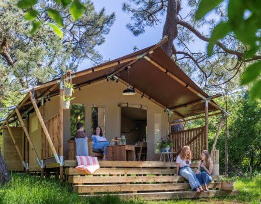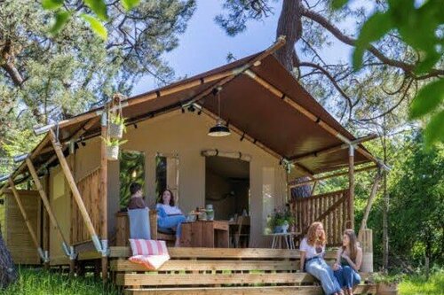 Location tente équipée semaine : de 210 à 615 € (lodge).