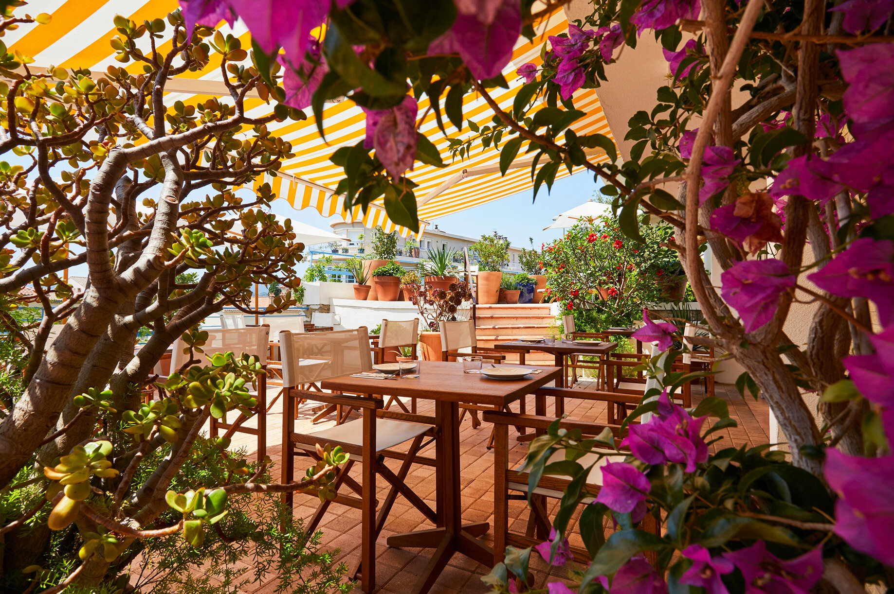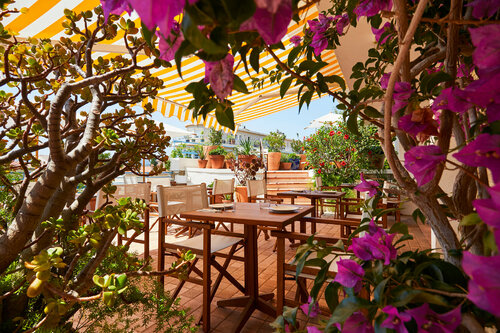 Une terrasse fleurie toute l'année vous permet de petit déjeuner pour 8€50 dans un cadre reposant aux beaux jours et la salle à manger, aux aspects de serres géantes, vous accueille durant l'hiver.
