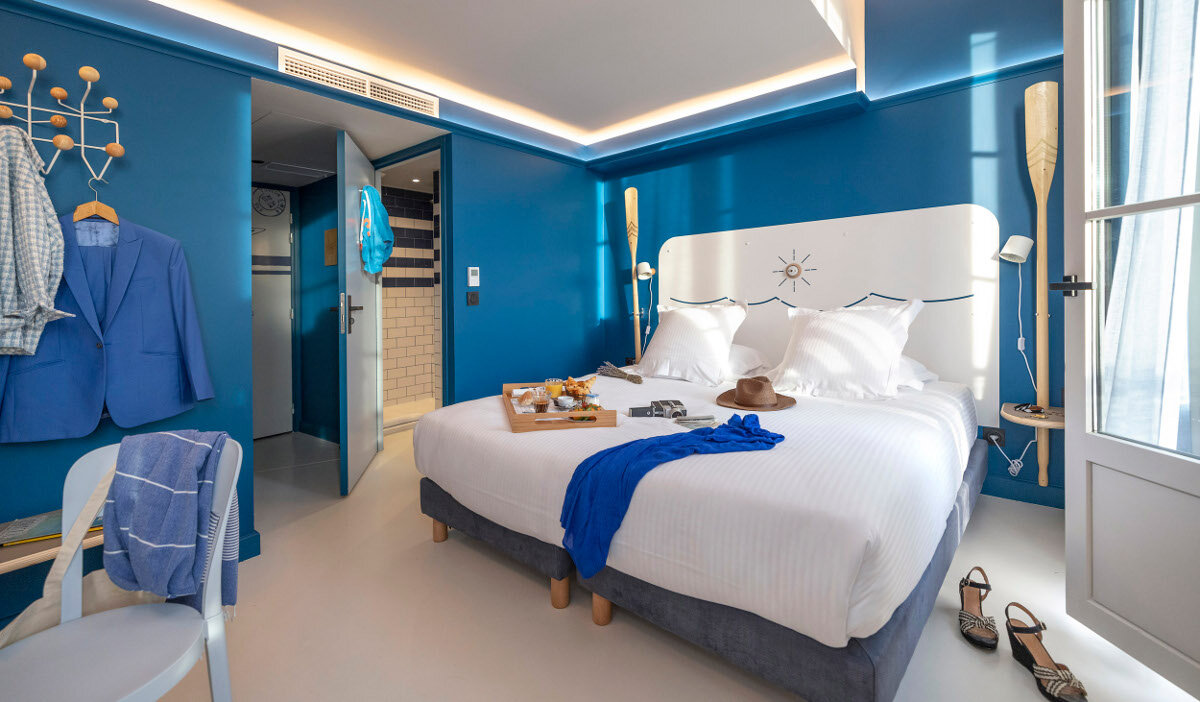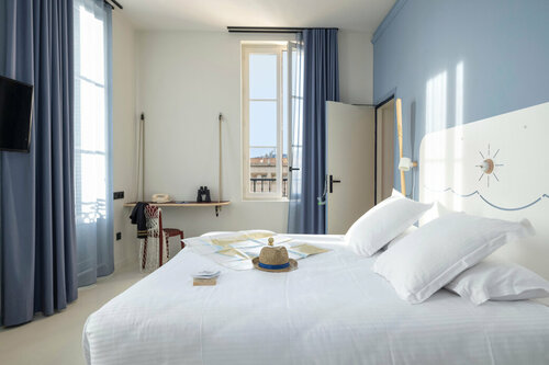 L’Eautel**** prend place dans 3 immeubles du XVIIe réhabilités où logeait jadis l’aristocratie navale. S’inspirant de l’histoire de Toulon, ville au passé militaire, le décor de l’Eautel**** s’articule sur la thématique de l’eau et de la Marine… Un vent d’aventure propice à des rêves d’échappées vers d’autres horizons.