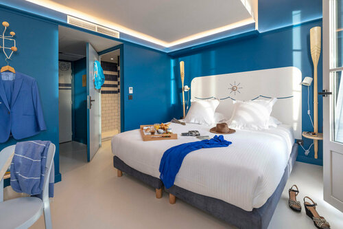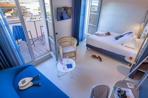 Réparties sur 4 étages, L'Eautel offre 62 chambres au décor décliné de la thématique des lieux, profitant de vues spectaculaires sur la rade, la mer, la vieille ville et le Mont Faron en fonction de leur orientation.
