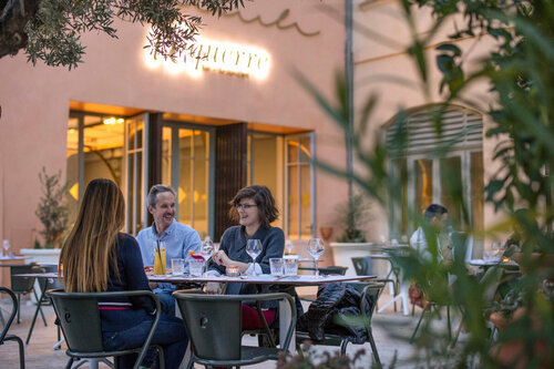 L’Équerre, le bar-restaurant bistronomique de L'Eautel, accueille 65 couverts sous une verrière restaurée à l’identique, attribuée aux Ateliers Eiffel, et offrant un véritable puits de lumière.