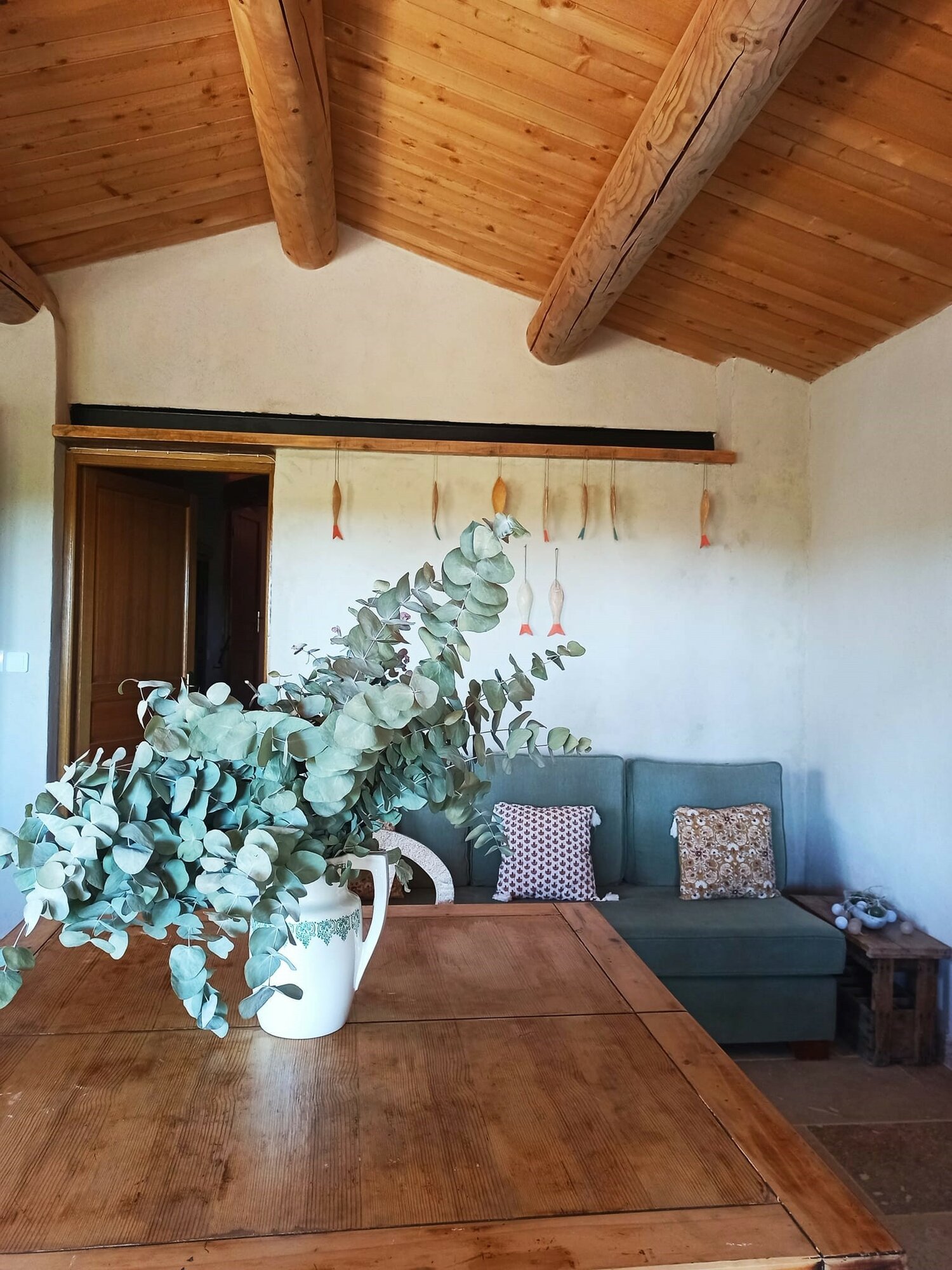 À l'intérieur, le gîte est décoré avec goût dans un style rustique et moderne. Les poutres apparentes et les murs en pierre ajoutent une touche d'authenticité, tandis que les équipements modernes vous garantissent un séjour confortable. Vous trouverez une cuisine entièrement équipée où vous pourrez préparer de délicieux repas, ainsi qu'un salon spacieux et confortable pour vous détendre.