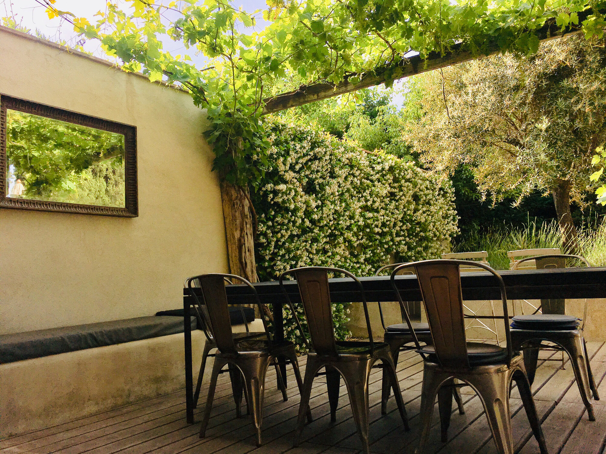 À l'extérieur, un magnifique jardin paysager entoure la propriété, avec une terrasse ombragée par une vigne, parfaite pour se détendre. La piscine privée chauffée vous invite à la détente, tout en offrant une vue imprenable sur les vignes environnantes.