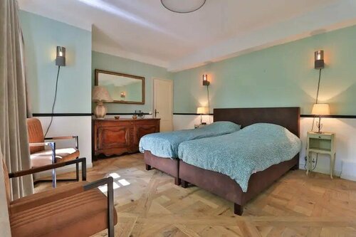 Dans le bâtiment principal, il y a deux gites séparé.s Le grand gite avec sept chambres spacieuses, lumineuses et confortables, le petit gite pour 6 personnes.