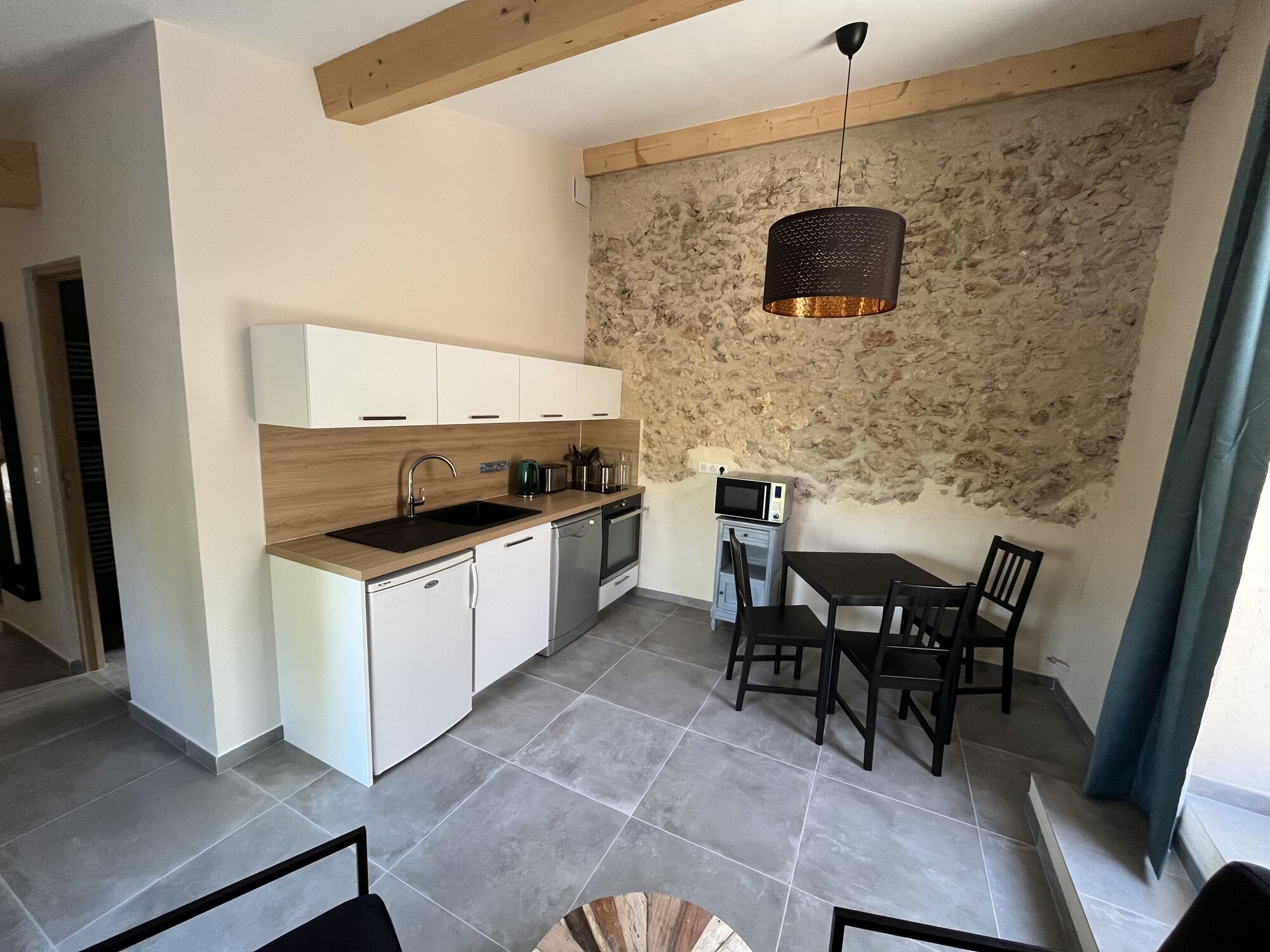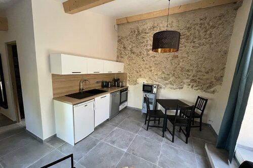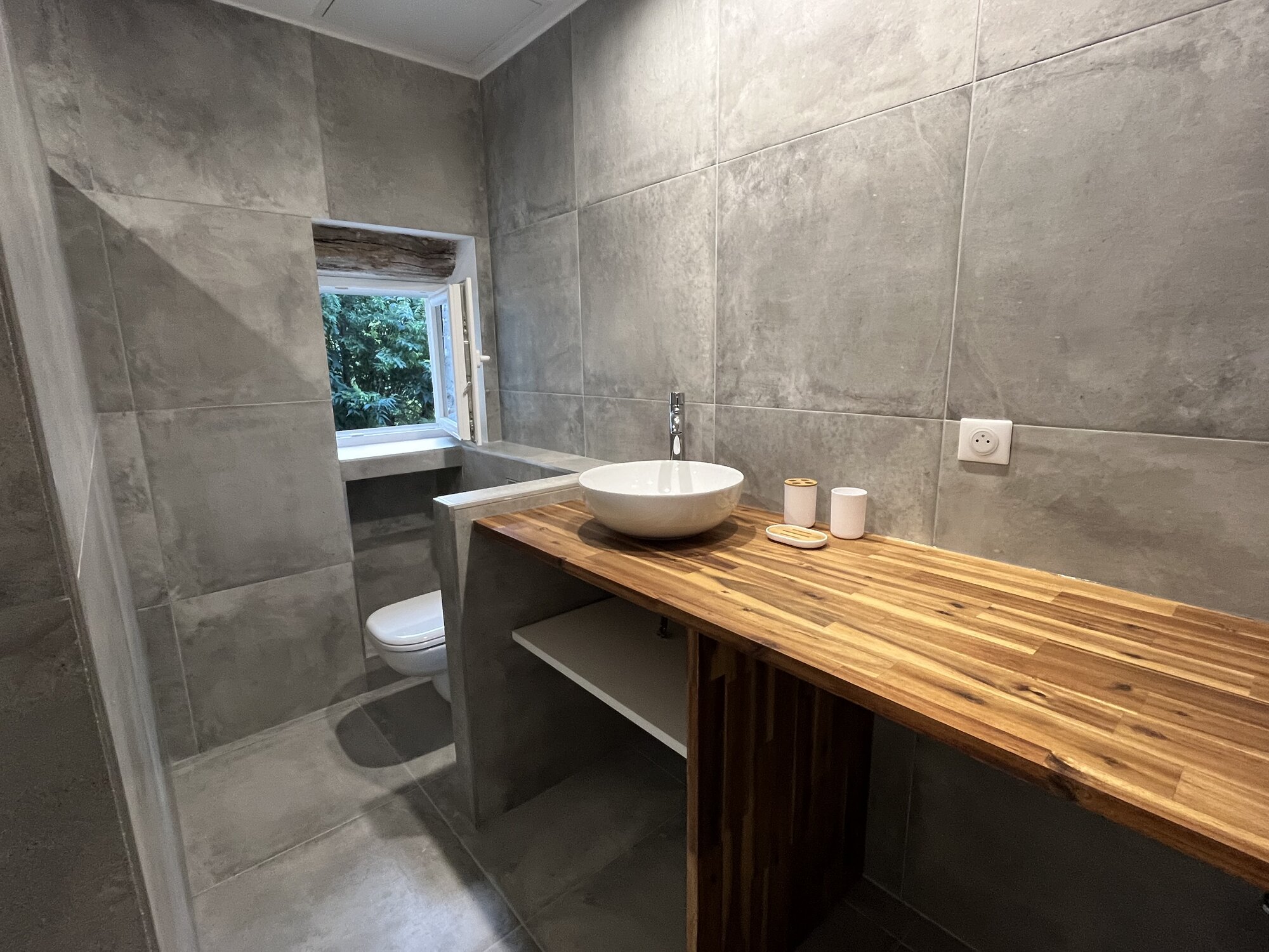 Les dépendances ont été aménagé en 2 chambres d’hôtes pour 2 personnes et un gîte pour 3 personnes. Chaque logement dispose d’une entrée indépendante et d’une terrasse privative avec son salon de jardin, son parasol.