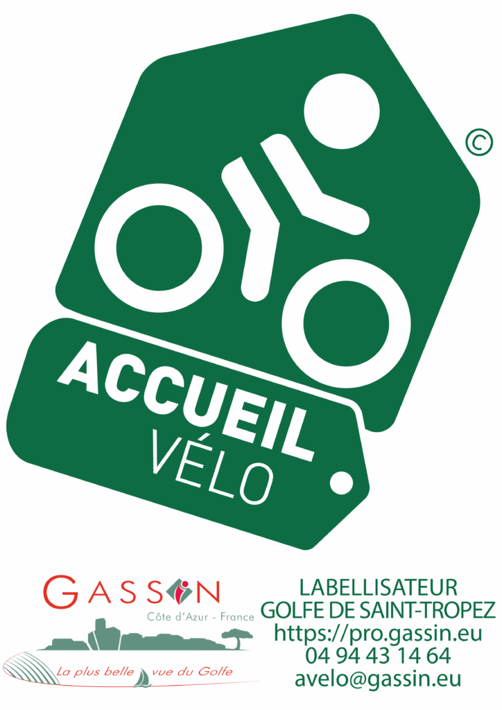 L’office de tourisme de Gassin a la double casque de labellisé Accueil Vélo et de labellisateur pour le golfe de Saint-Tropez. Cette marque est portée au niveau national par France Vélo Tourisme.