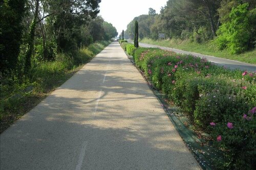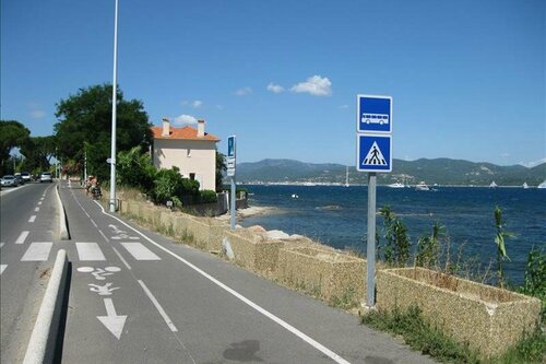 - Au départ du rond-point de la Foux en direction de St Tropez en suivant la RD98A en site propre et site partagé sur une longueur de 4 km.