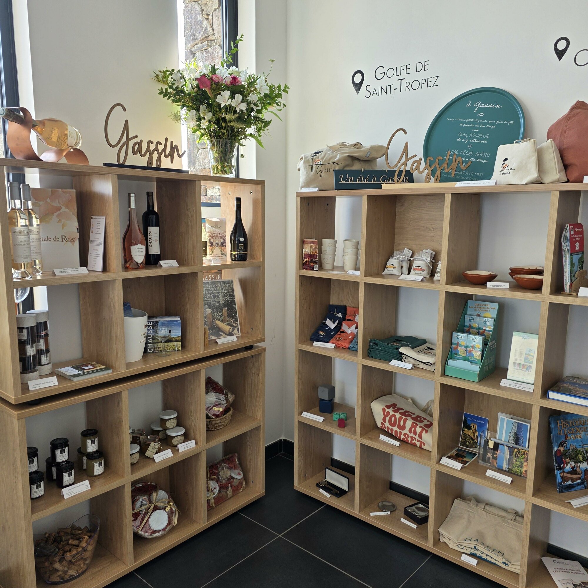 La boutique de l’office de tourisme de Gassin met à l’honneur l’art de vivre et les savoir-faire de notre territoire. Vous y trouverez une sélection de produits du terroir — huile d’olive du moulin de Val-de-Bois, vins de la quasi totalité des domaines de Gassin, confitures artisanales — ainsi que des créations issues du réseau des Plus Beaux Villages de France. Nous vous proposons également sacs, objets de décoration, souvenirs élégants ou gourmands : chaque article raconte un peu de Gassin et de la Provence.