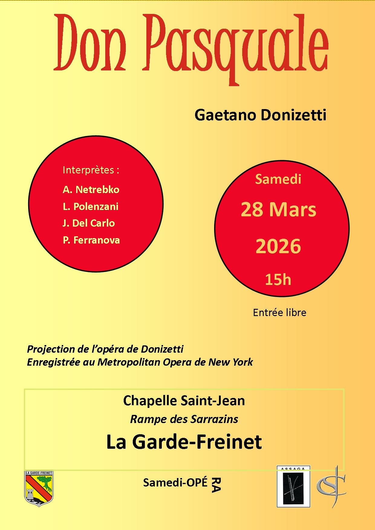 Proiezione dell'opera "DON PASQUALE" di Gaetano Donizetti a La Garde-Freinet (Var, France)