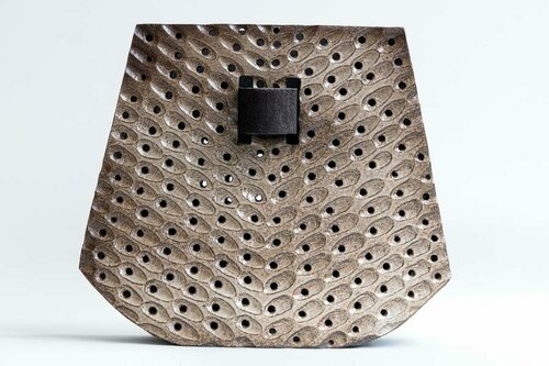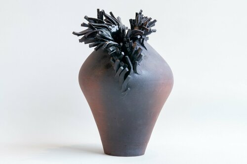 Le sue opere giocano sugli opposti: materiali grezzi e lucidi, superfici lisce e strutturate. L'argilla è impressa a rilievo o intrecciata.