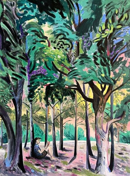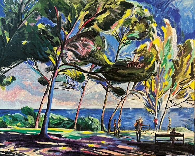 Alexandre Imbert presenta una mostra vibrante che unisce mare, alberi, paesaggi del sud, musicisti e figure umane. Una pittura fauvista, istintiva e luminosa, guidata dall'emozione e dall'energia della vita.