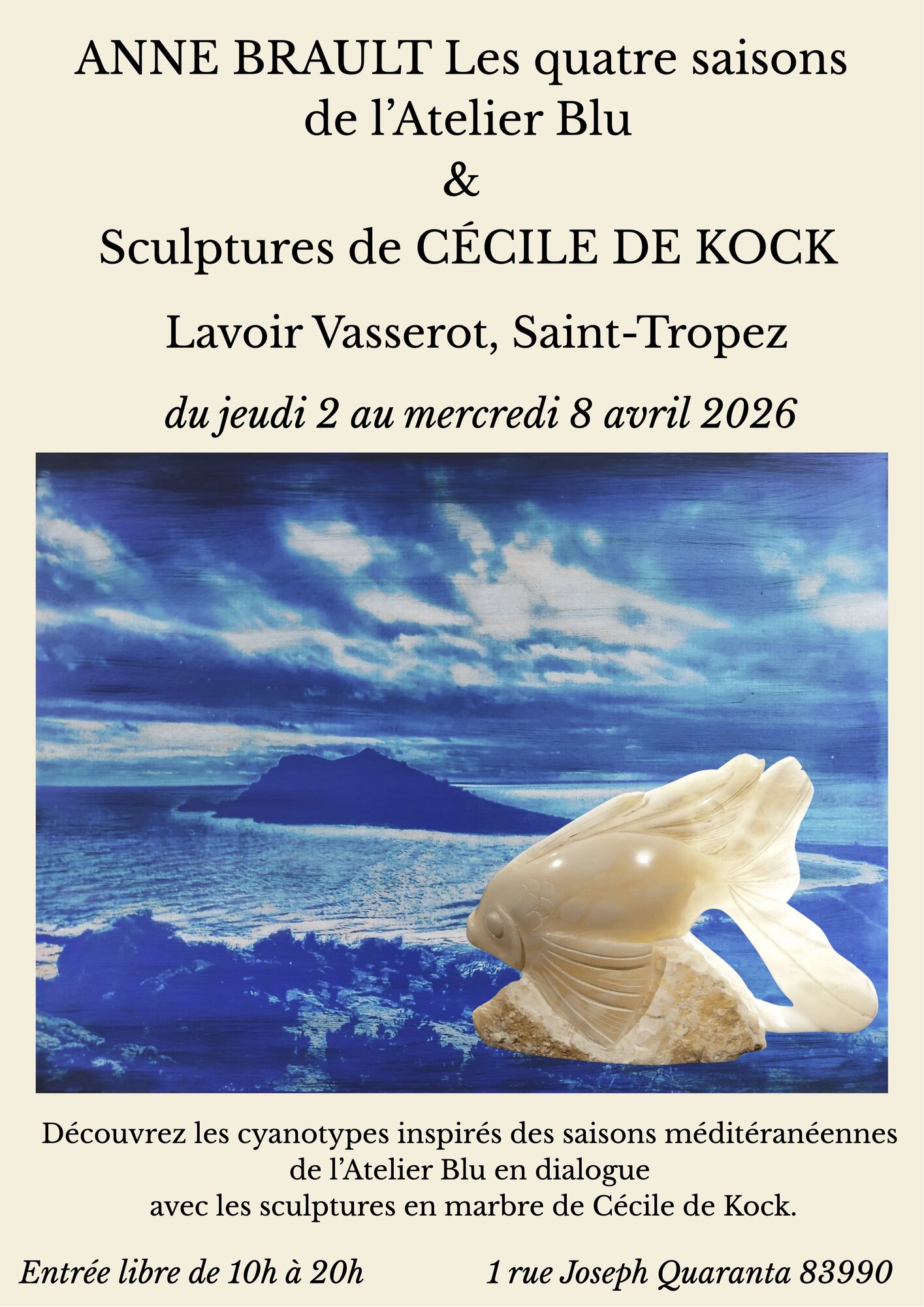 Mostra Lavoir Vasserot - Le quattro stagioni di Atelier Blu - Sculture di Cécile de Kock a Saint-Tropez (Var, France)