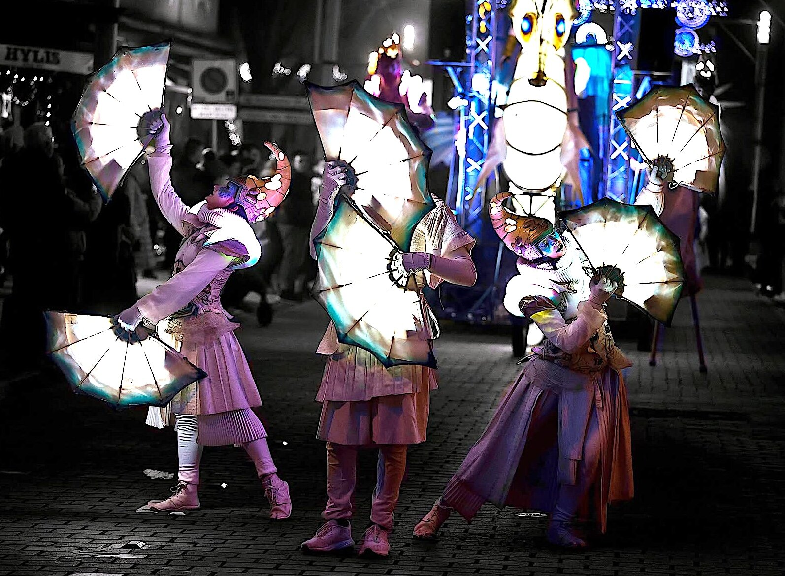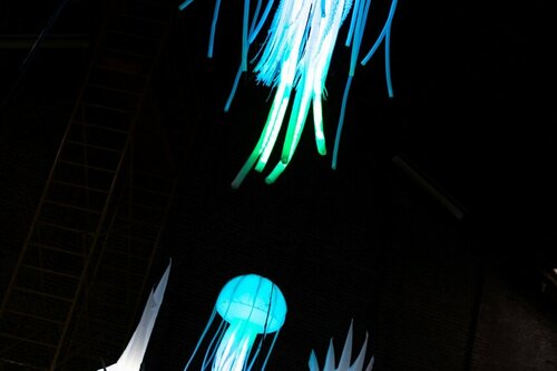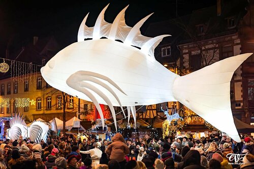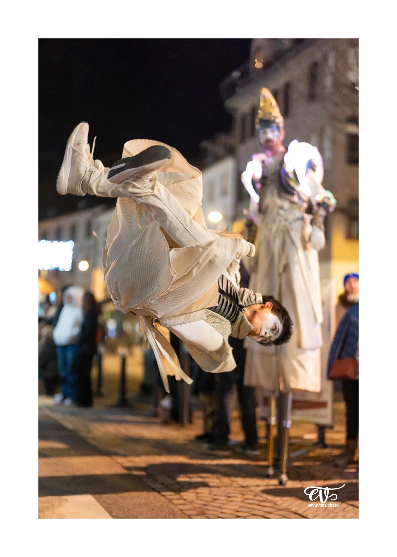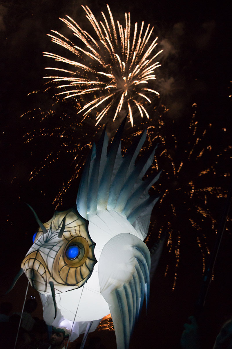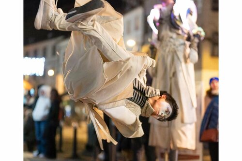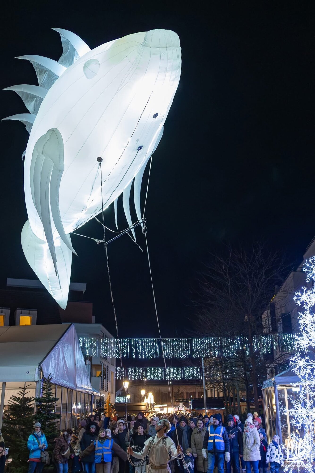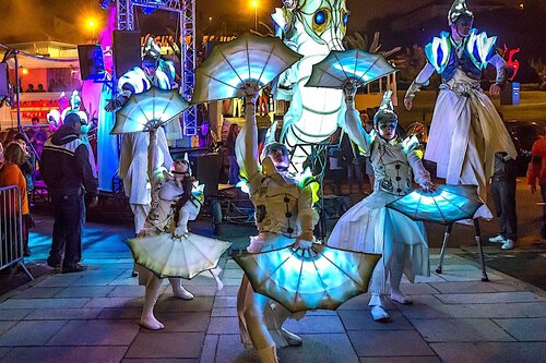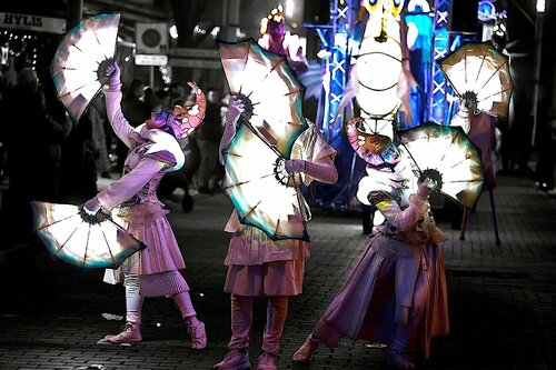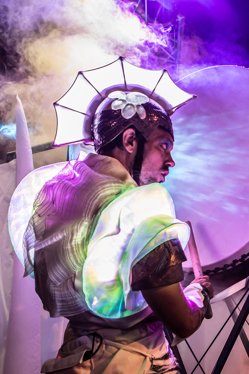 Un'impressionante processione di luci si muove nella notte, trasportata dai ritmi di Taikos e dai suoni elettronici. Una via lattea di meduse, stelle scintillanti e un maestoso cavalluccio marino, accompagnati da trampolieri, guidano con orgoglio il galleggiante Océanis.